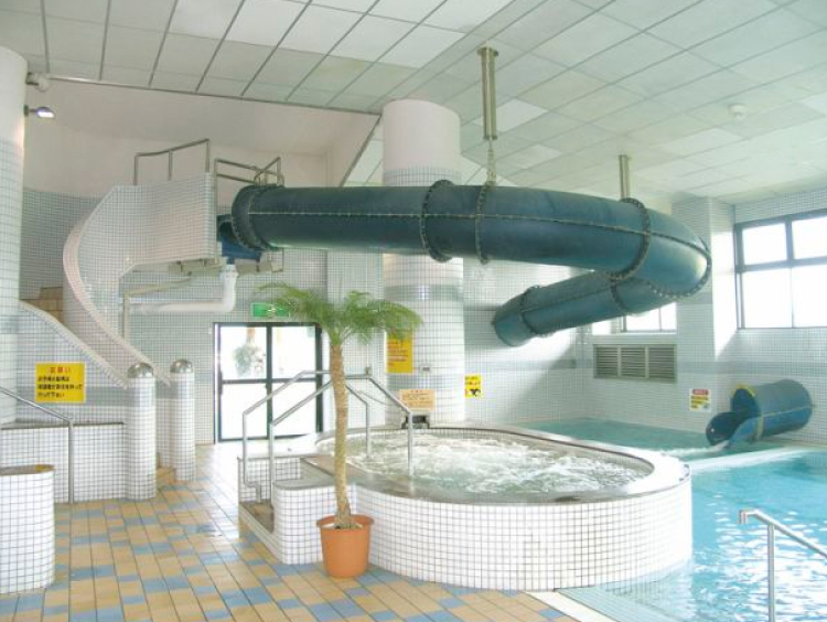 水着エリアには、7種類の浴槽や2種類のサウナ、子供達に人気のウォータースライダー付プール、東郷湖が一望できる露天風呂を満喫できます。